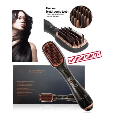 يحتوي على ثلاثة إعدادات مختلفة هي حرارة وعالي ومنخفض لاختيار ما يناسبك فرشاة تنعيم وتجفيف وفرد وتشكيل الشعر وتلميعه في منتج واحد.